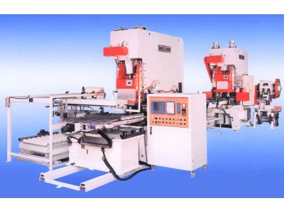 自動化沖壓線,由整張馬口鐵皮進料沖壓,提高鐵皮利用率。沖壓機採用PLC控制,配合精密模具,精確沖製出完美的成品並確保人、機安全。